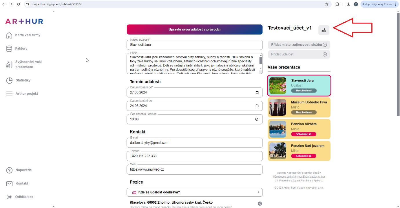 Vpravo nahoře se nachází váš projekt. Klikněte na ikonu vedle názvu projektu.