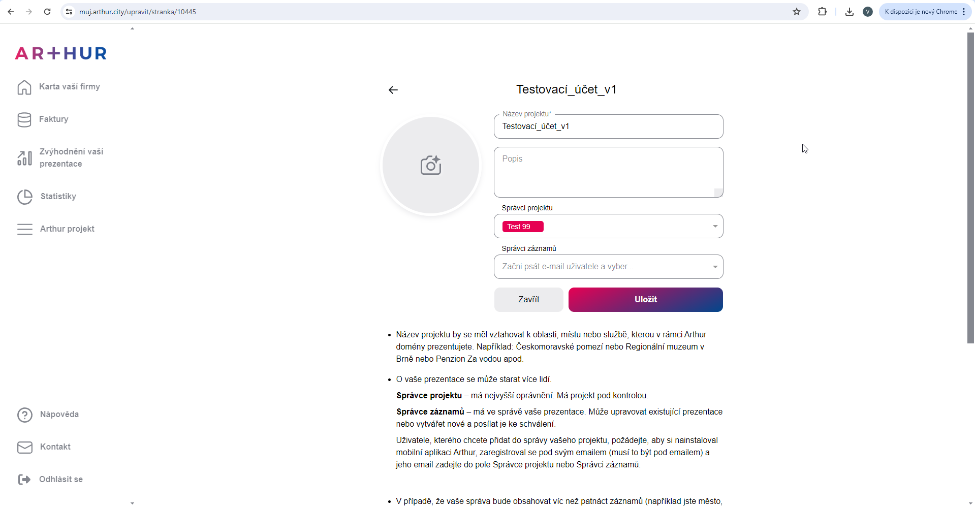 Správci projektu – jedná se o osobu nebo osoby, které mají celý projekt pod kontrolou. Respektive, mohou vkládat další správce, ale i mít pod kontrolou záznamy (prezentace)