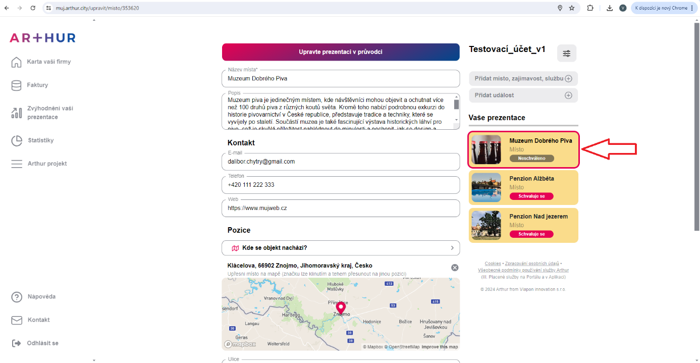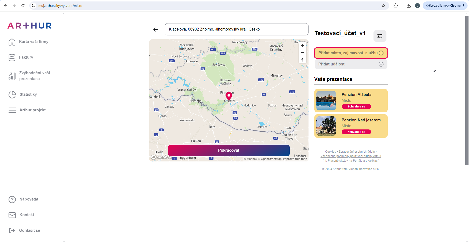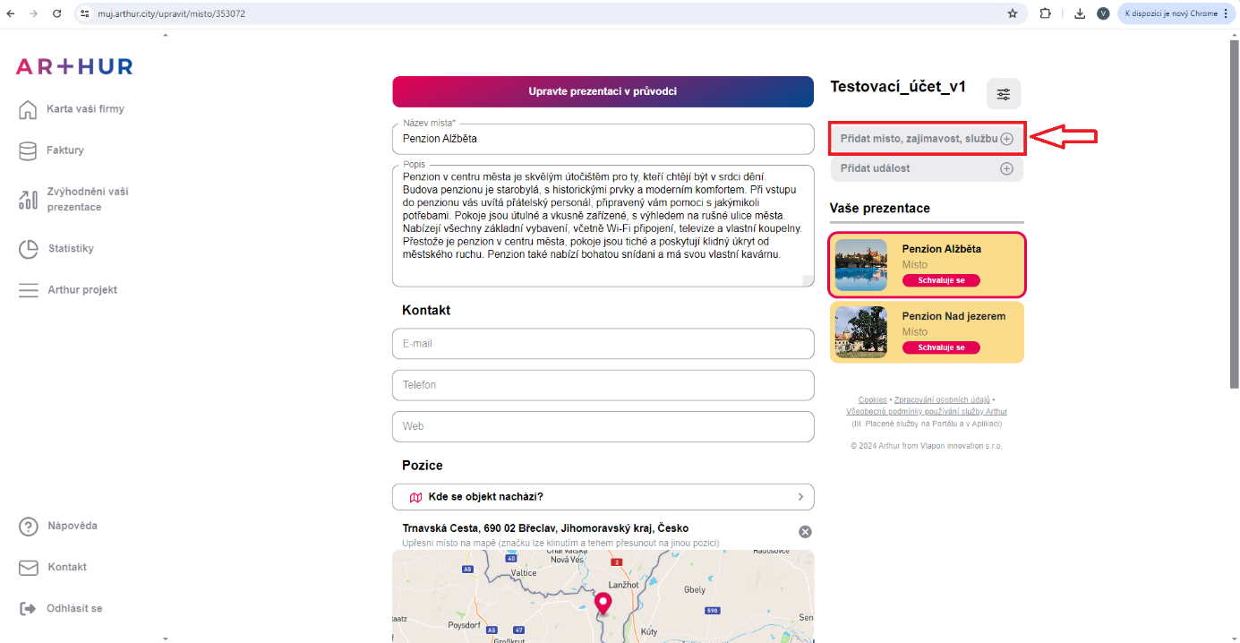 Klikněte na tlačítko Přidat místo, zajímavost, službu