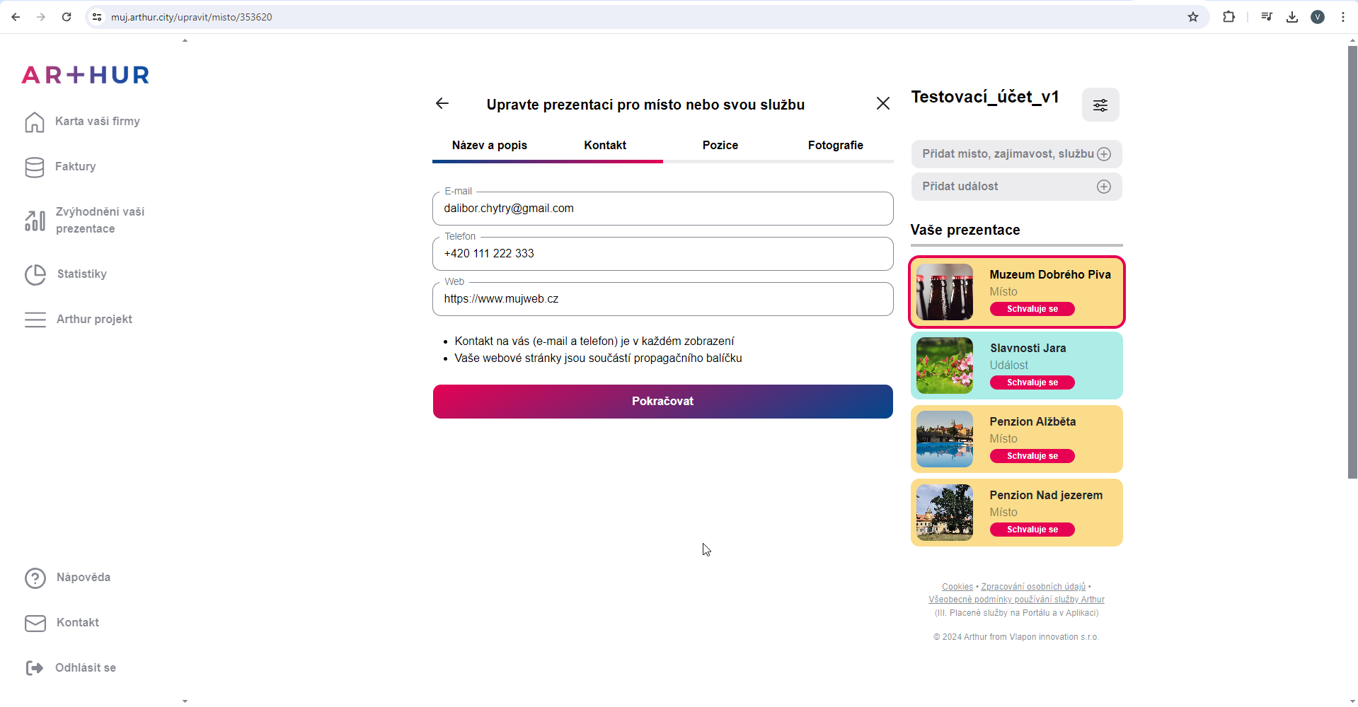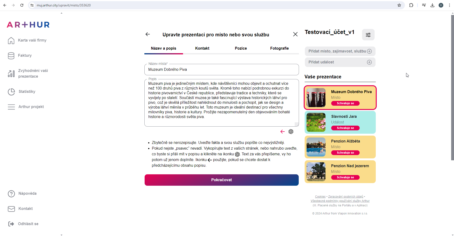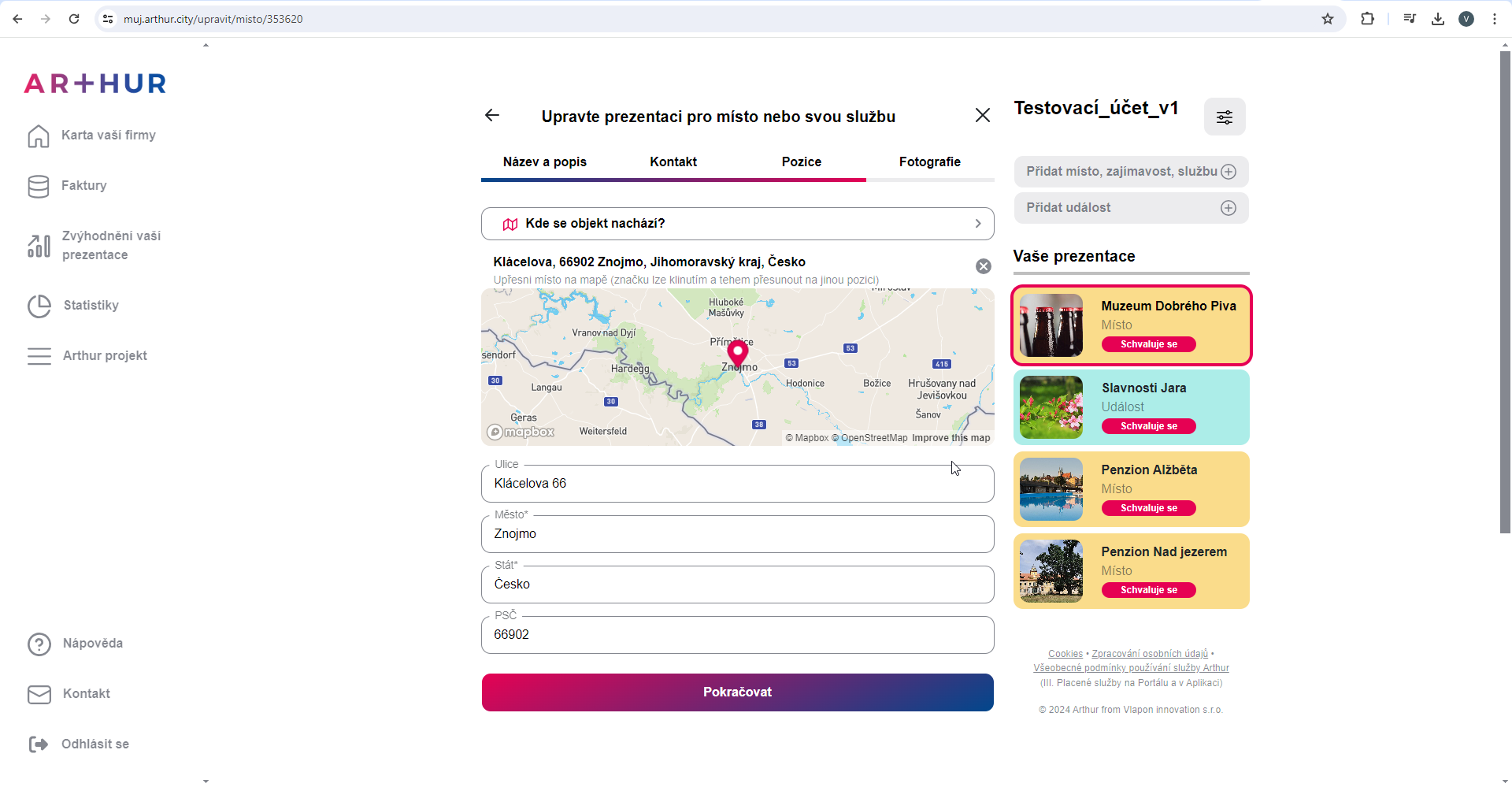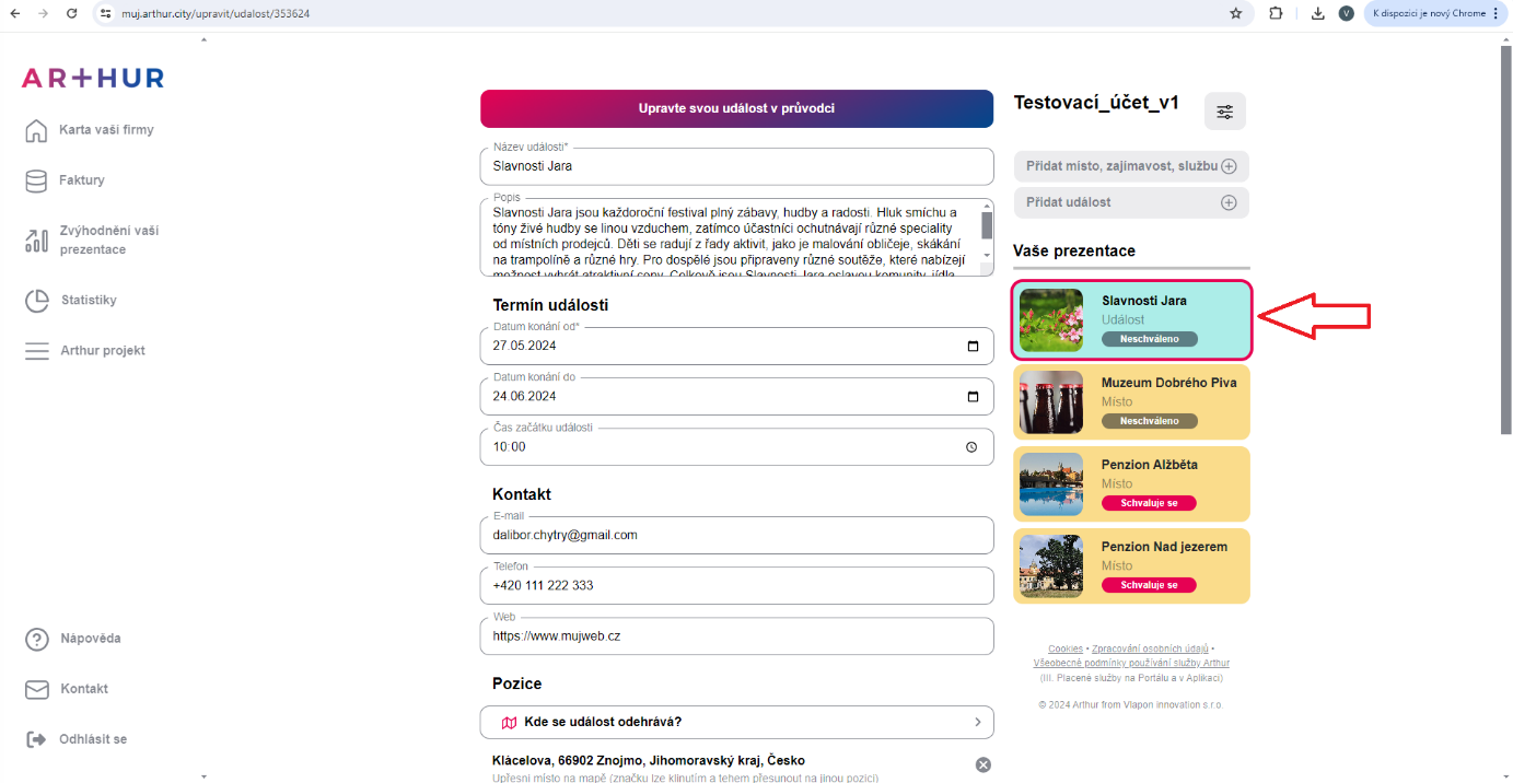 Úprava existujícího místa nebo události