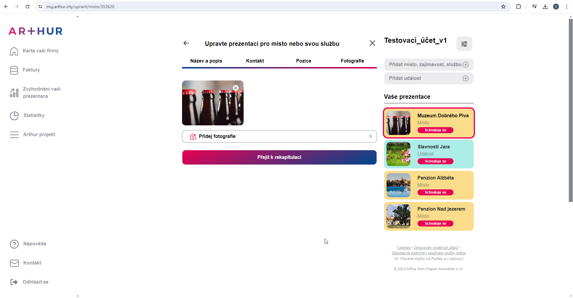 Klikněte na Přejít k rekapitulaci
